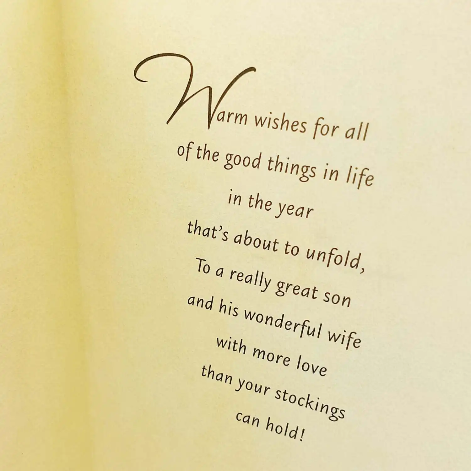 Celebrate the warmth of the season with this heartfelt Hallmark card, perfect for a dear son and daughter.